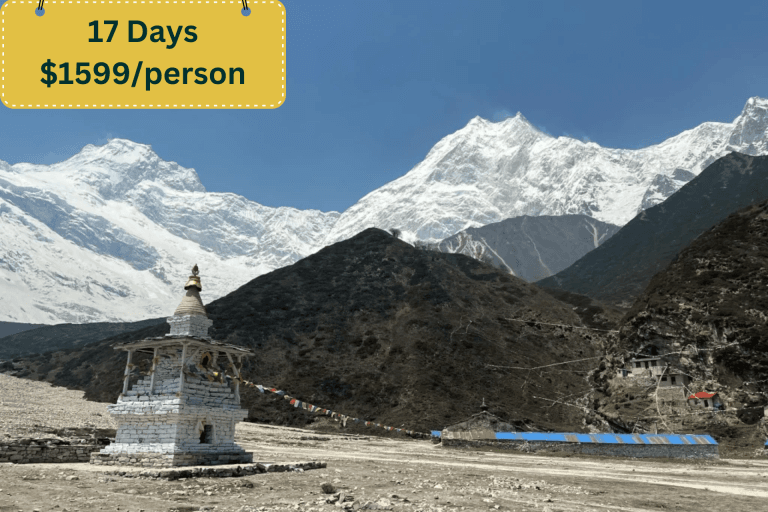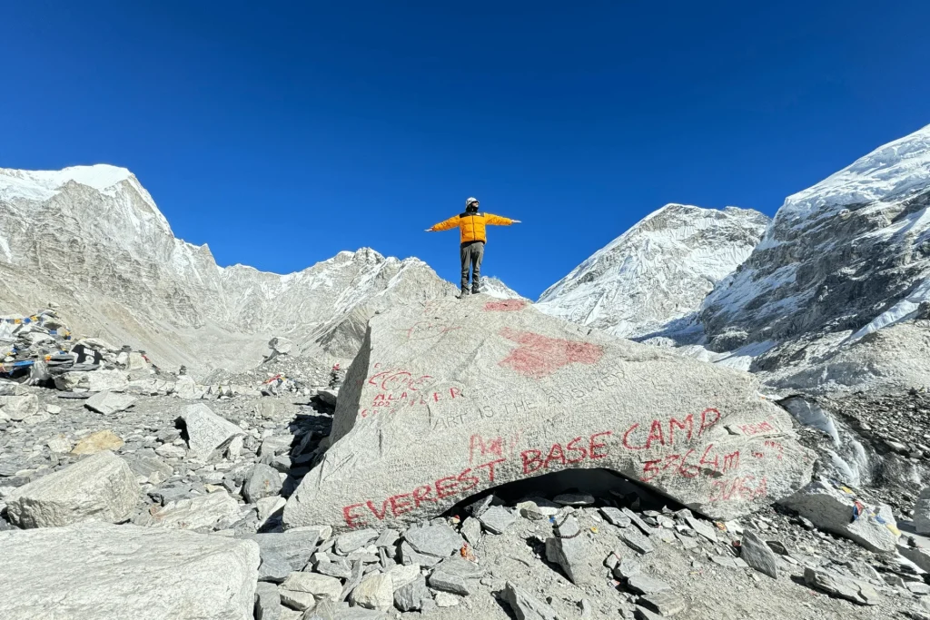 As the trek progresses, trekkers acclimatize to the increasing altitude while immersing themselves in the unique Sherpa culture. Villages like Namche Bazaar, the bustling heart of the Khumbu, and Tengboche, home to one of the most famous monasteries in the region offer insights into Sherpa traditions and way of life. The highlight of the EBC trek is reaching Everest Base Camp itself located at an altitude of approximately 5,364 meters (17,598 feet). While climbers prepare for their ascent of the world’s highest peak trekkers soak in the surreal surroundings, surrounded by towering icefalls and glaciers. The sense of accomplishment at reaching this legendary destination is indescribable and the views of Everest and its neighboring peaks are simply awe-inspiring.